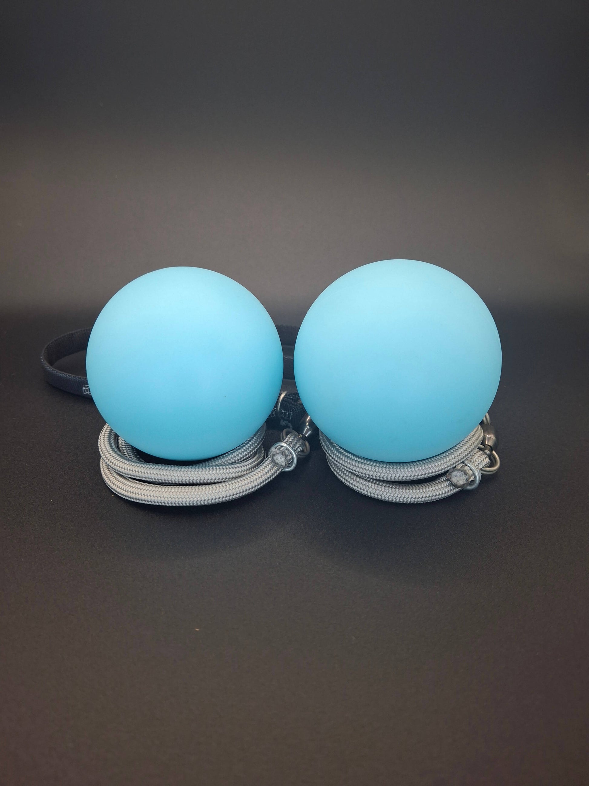 Bolas di colore blu/azzurro con maniglia e corda di alta qualità. Il materiale morbido di cui sono composte le rende abbastanza pesanti per una buona spinta, ma anche molto sicure in caso di colpi accidentali. Buon prodotto per iniziare a praticare questa branca della giocoleria!